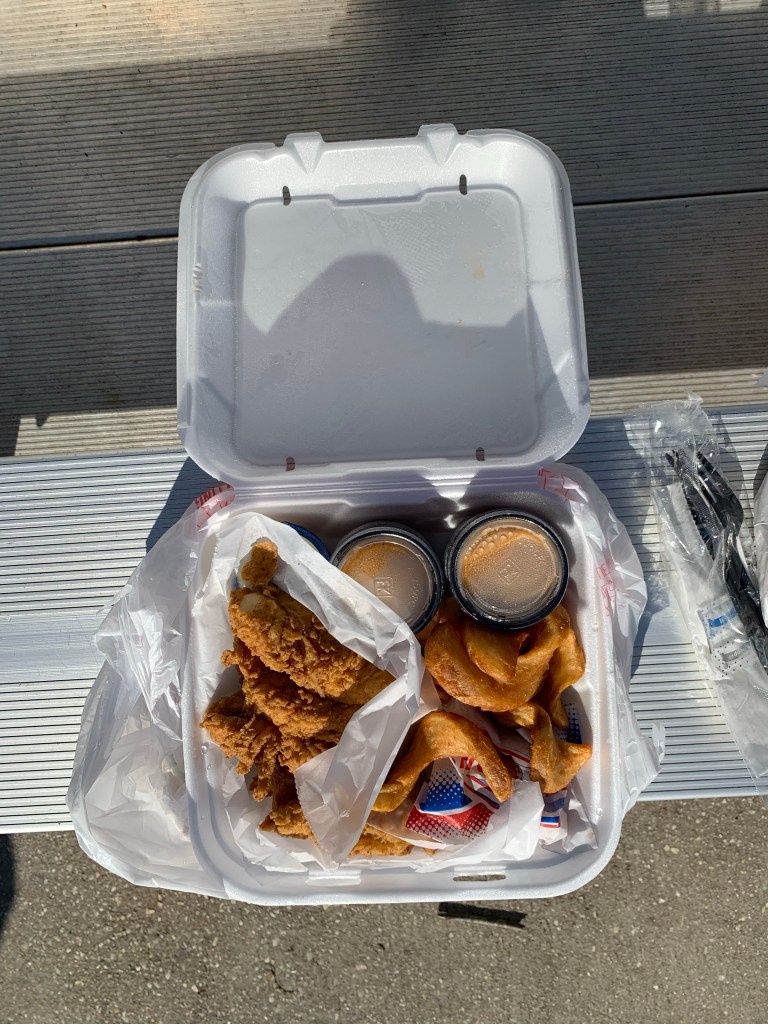 There were some bright spots. The fries used a light dusting of seasoning salt, which is generally a good thing. And the most important component here – the tenders – were well executed. They had a completely unique dark brown color and while there were no visible spice flakes they were well salted and seasoned. A minor complaint with this breading is that it was thin and fragile relative to competitors other than Wemo’s, and seemed to rip a page from Guthrie’s which uses a similar philosophy. Tenders were oblong but of an average size.